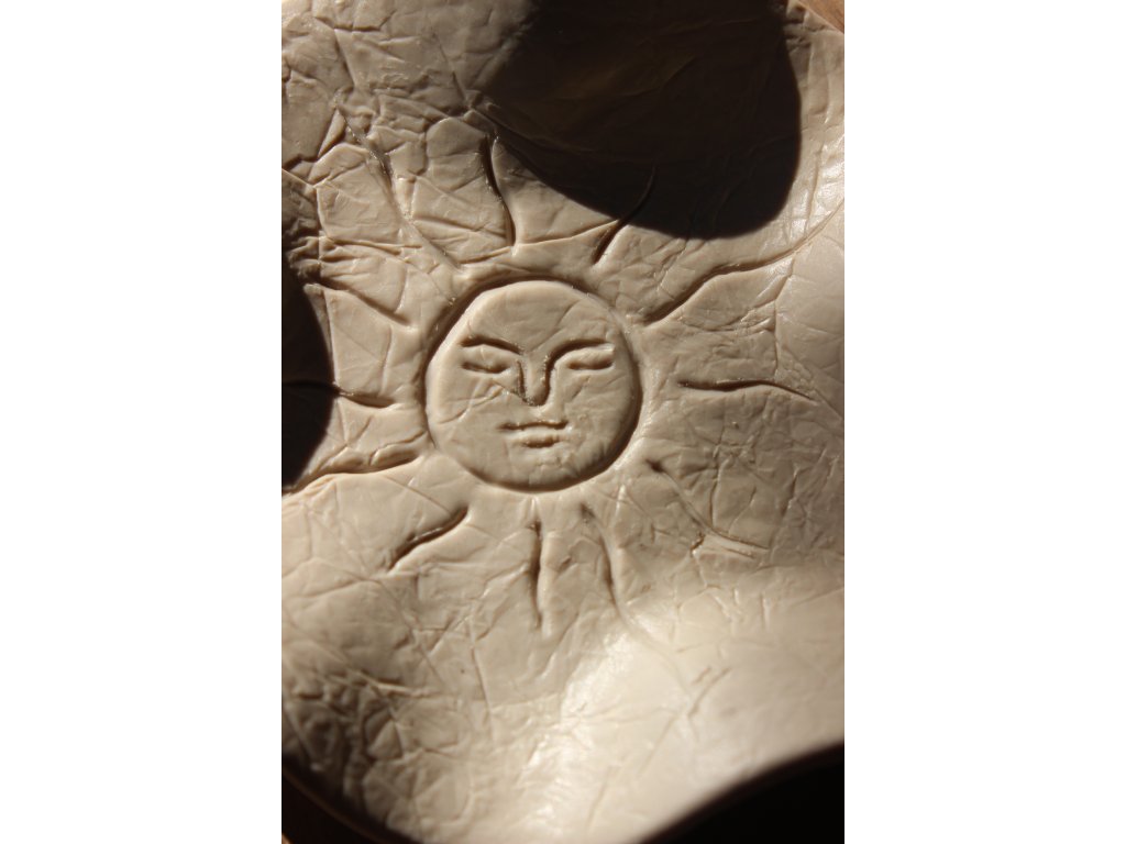 Originálna dekoračná mištička z Fima so symbolom slnka, vytvorená ručne s dôrazom na detail. Symbol slnka predstavuje radosť, život a pozitívnu energiu. Krásne vynikne na poličke či stole. Môže slúžiť na odkladanie drobných šperkov, kamienkov alebo ako malý talisman pre svetlo a harmóniu v domove.