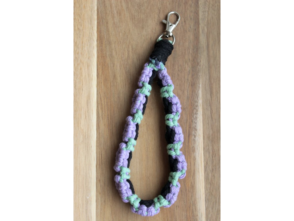 Tento fialový macramé prívesok je ručne viazaný s dôrazom na detail a harmóniu farieb. Vďaka fialovej farbe vytvára pokojný a zároveň originálny vzhľad, ktorý zaujme na prvý pohľad. Prívesok je vhodný na kľúče, kabelku, batoh alebo ako drobný darček pre niekoho, kto má rád ručné práce a prírodný štýl.