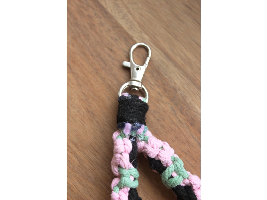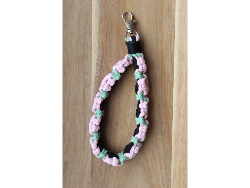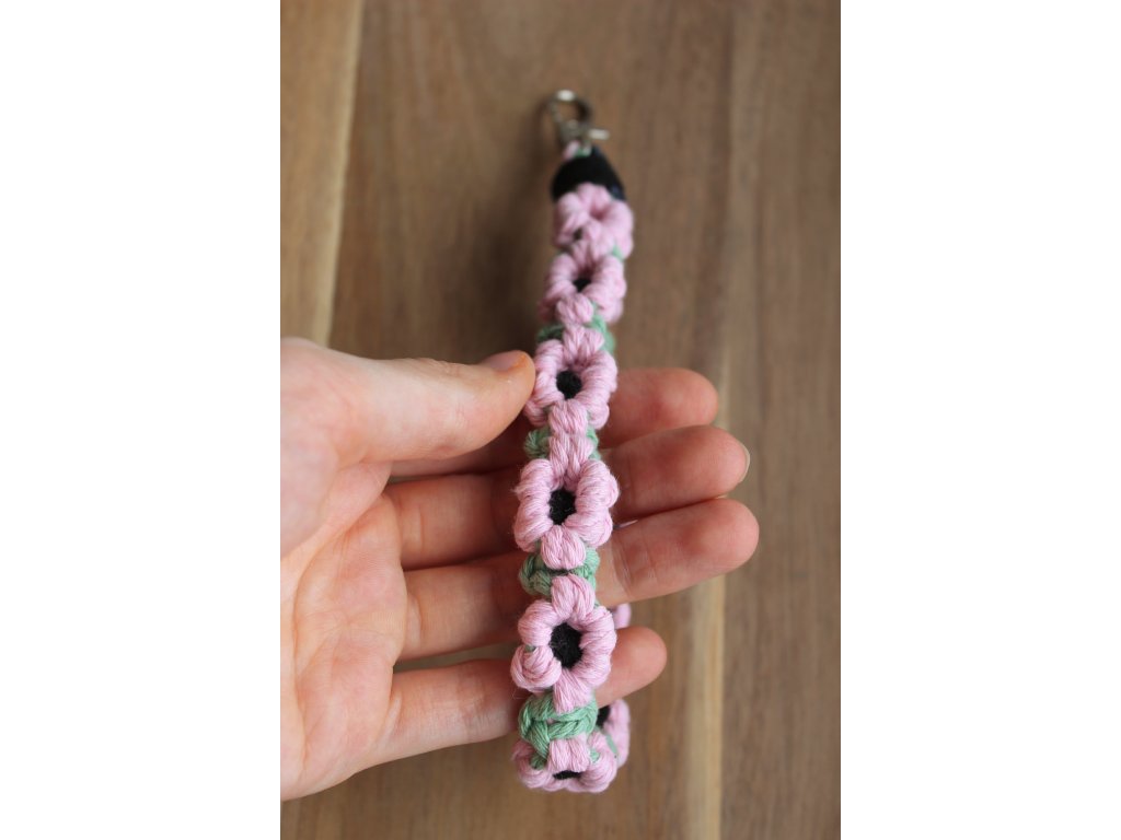 Tento ružový macramé prívesok je ručne viazaný s dôrazom na detail. Ružová v kombinácii s prírodnými tónmi vytvárajú harmonický a nežný doplnok, ktorý pôsobí žensky a zároveň originálne. Prívesok je vhodný na kľúče, kabelku alebo batoh.