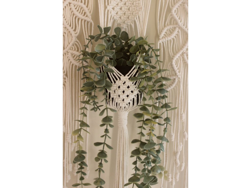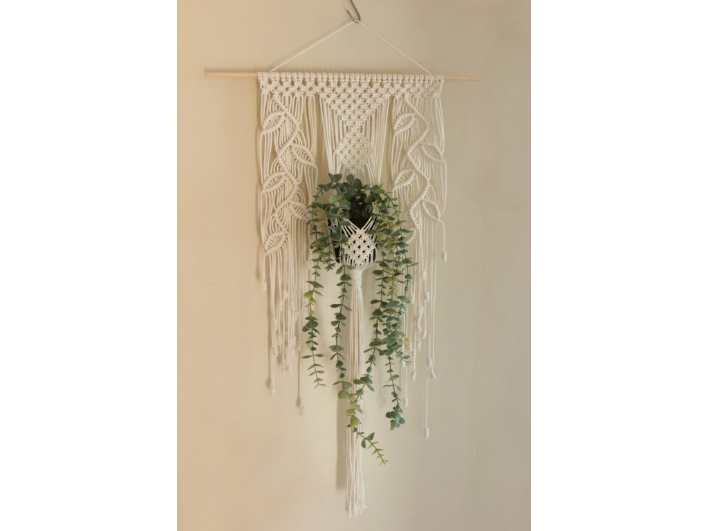 Súčasť balenia: macramé, kvetináč a umelá rastlina